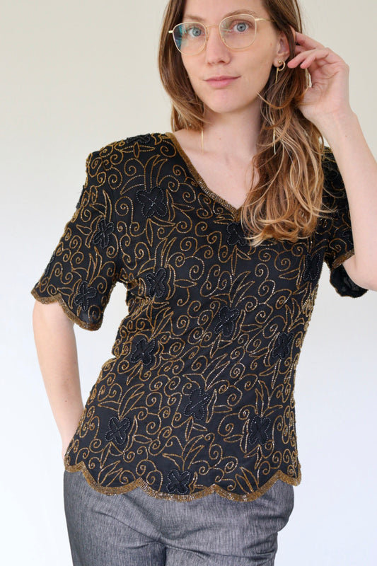 The Beads and Black - beaded / sequin top - S up to L