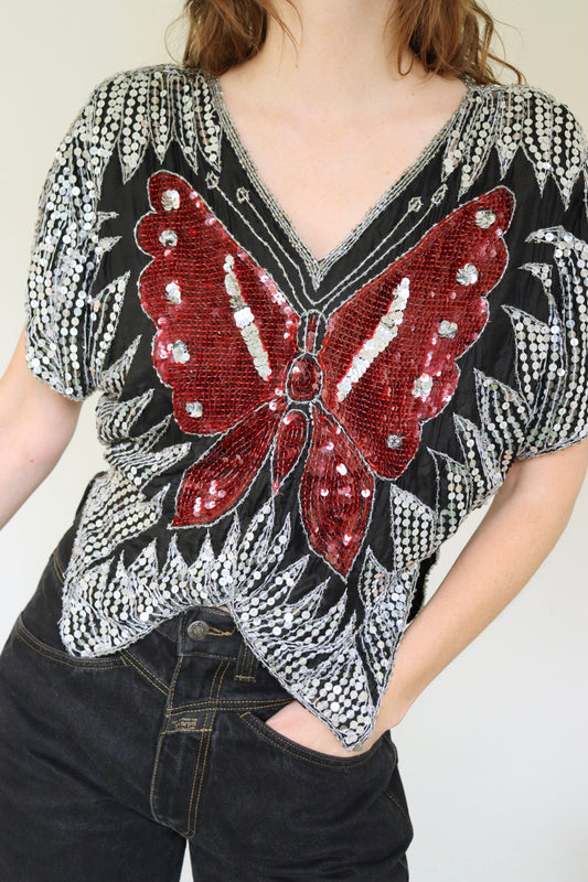 The Sequin Butterfly Red - top - S up to L