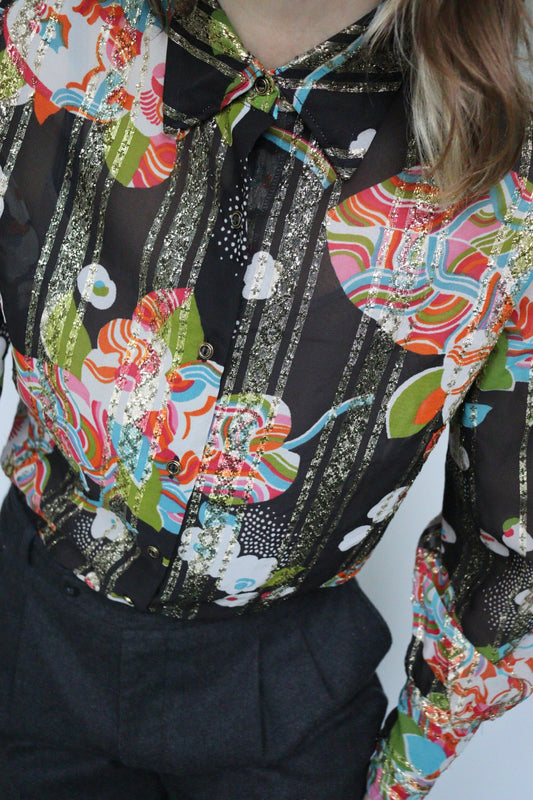 • The Stripes & Sparkle - semi see-trough blouse - S up to M/L