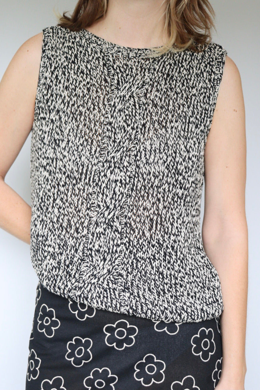 Black and white top with knitted detail on the front.