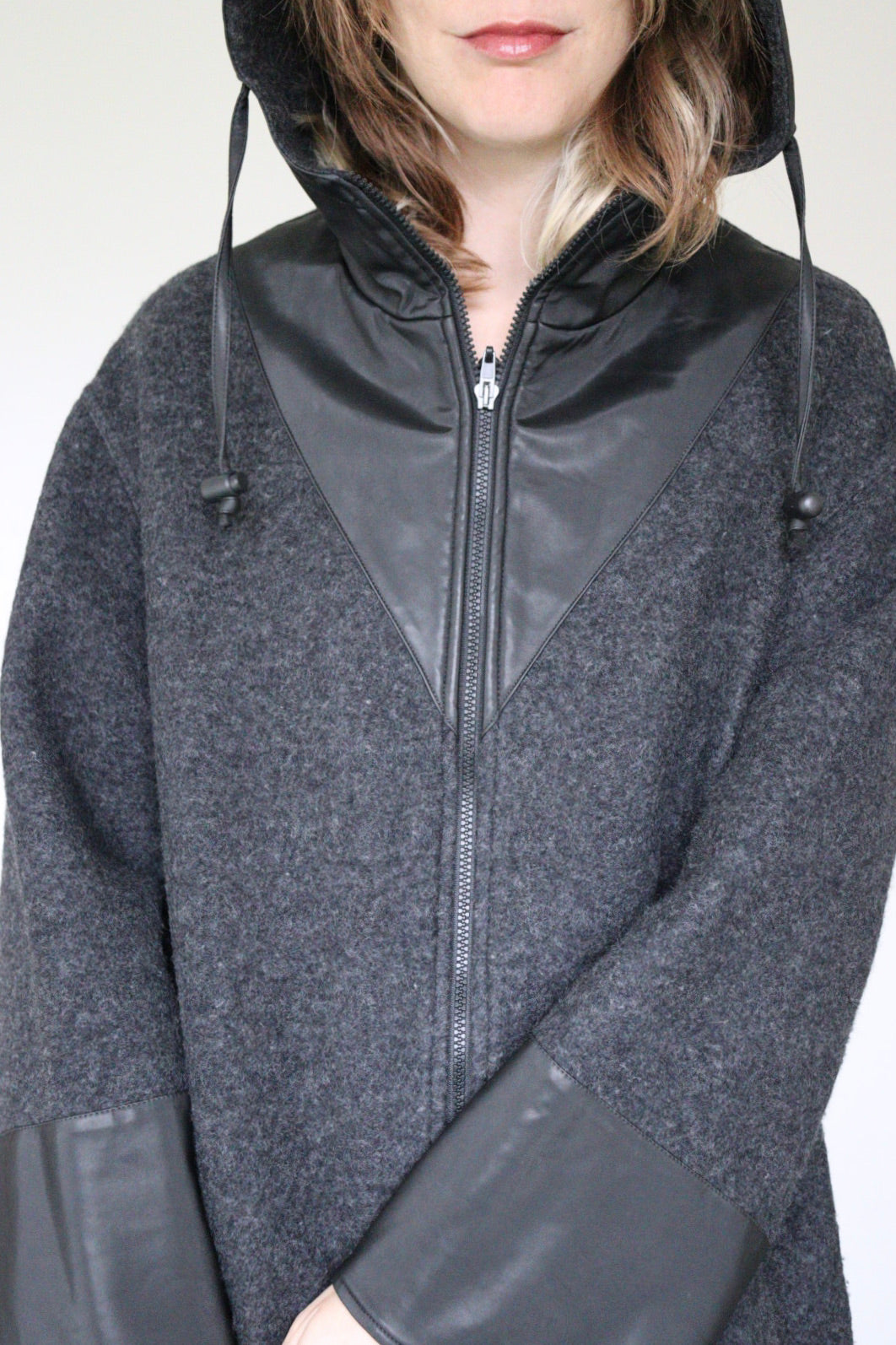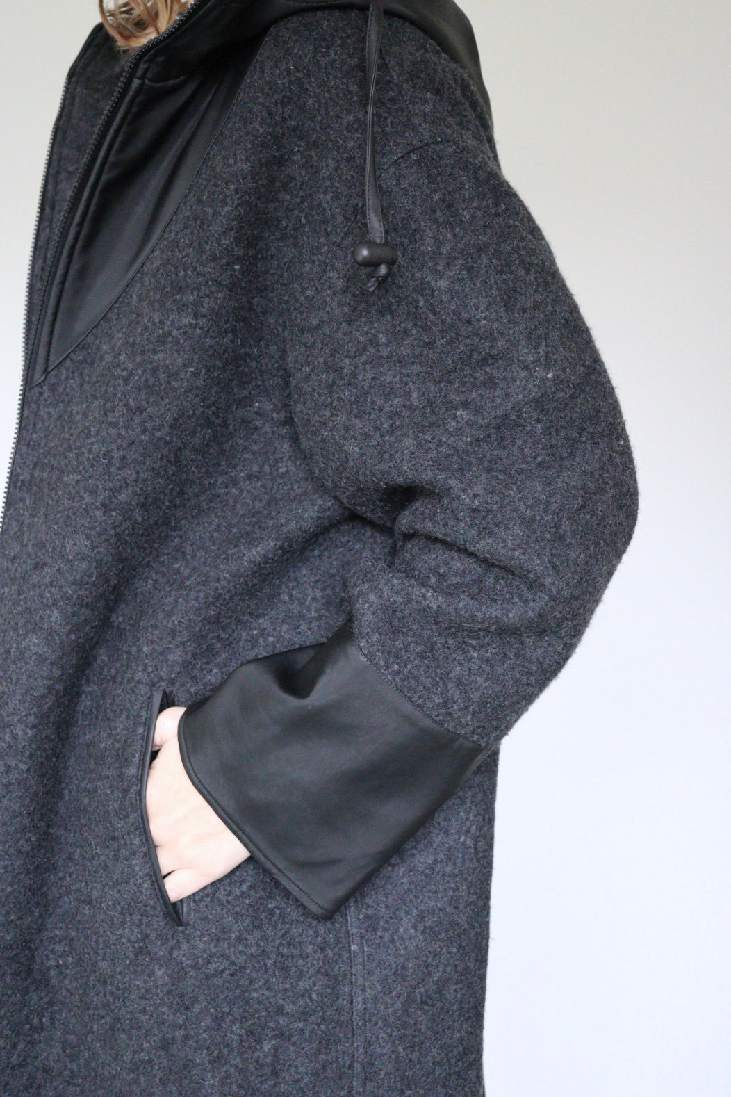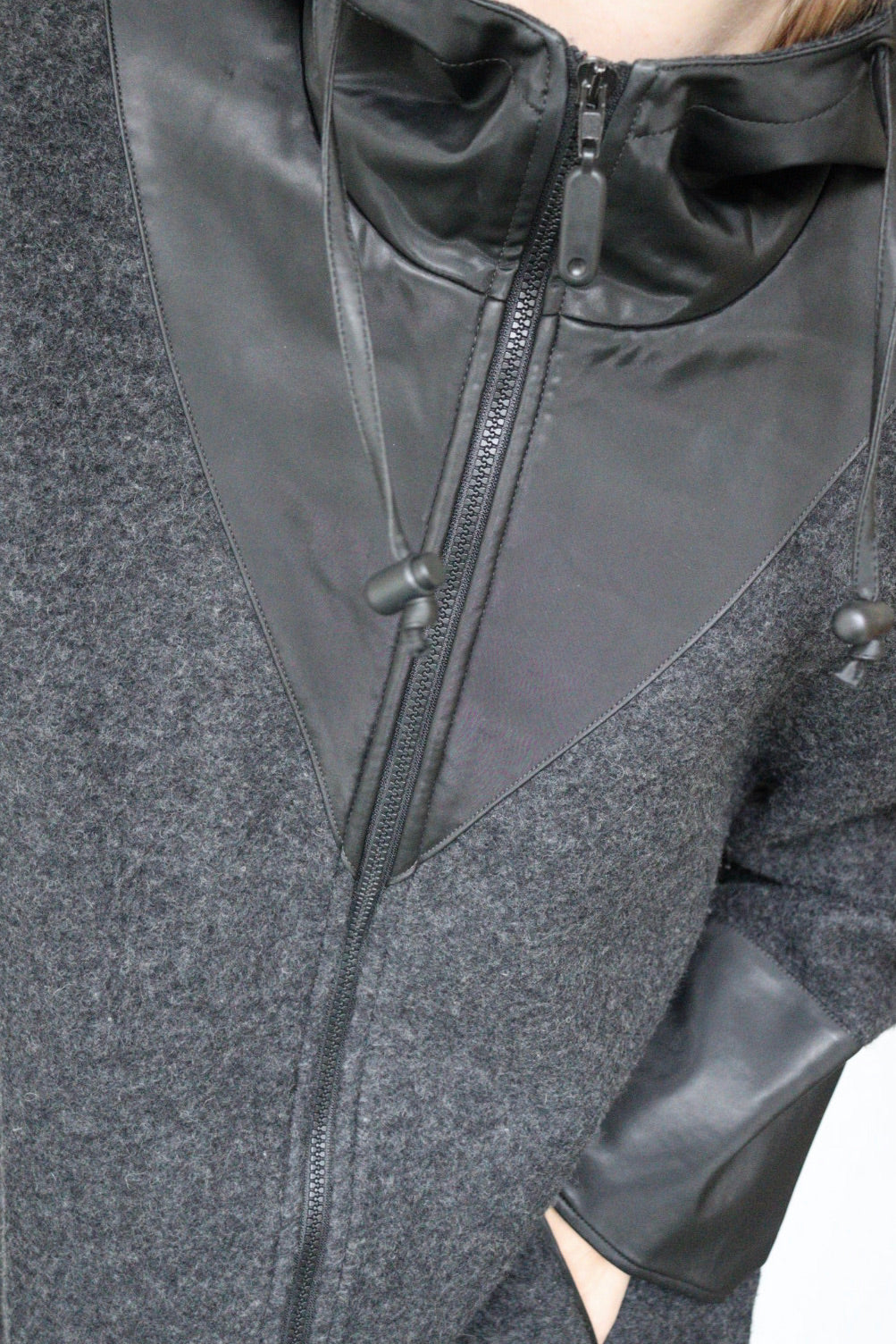 Beautiful long wool coat with contrast detailing, warm and stylish.