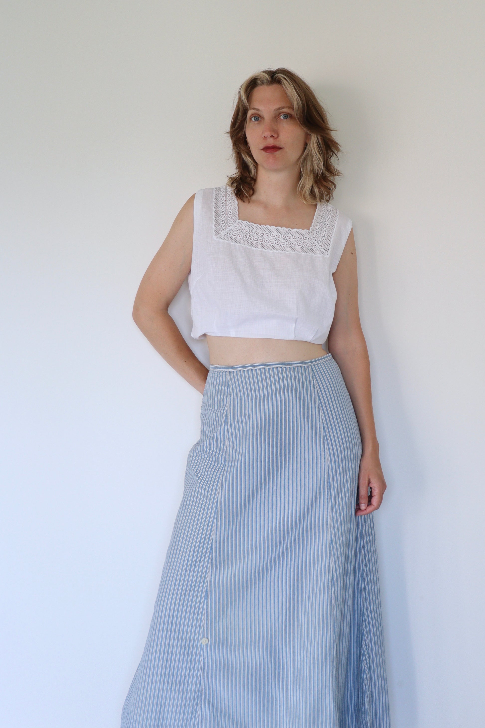 Striped long skirt from the brand Oilily, founded 1963 in Holland. With buttons to make different shapes to the skirt.
