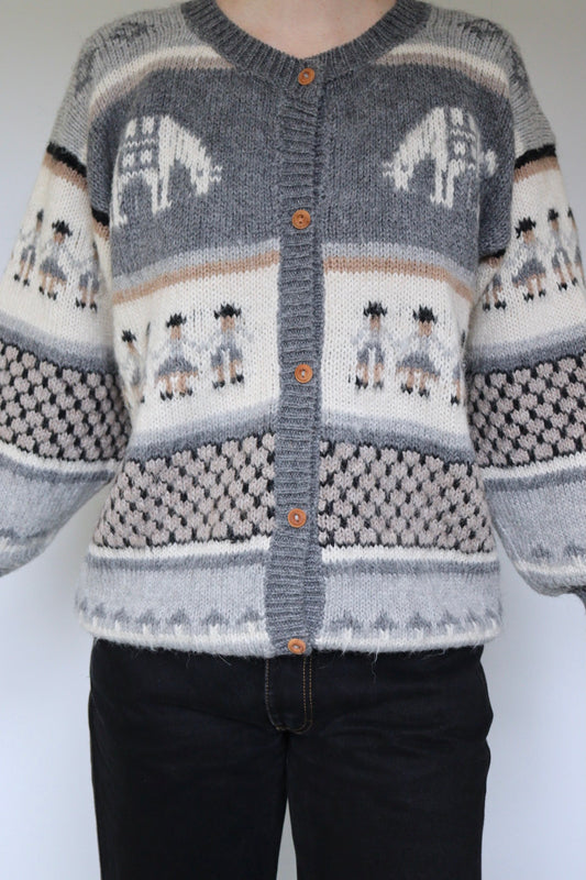 The Peruvian Cardigan - vintage knitted alpaca cardigan - S up to M/L